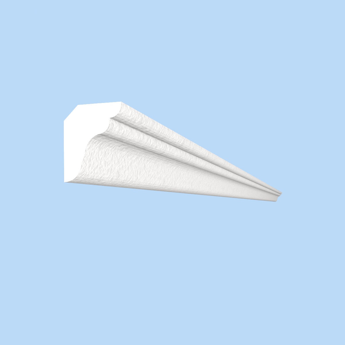 Карниз из пенопласта марки ПСБ-С-25Ф для отделки фасада частного дома, ничем не окрашен и не обработан. Требует финишной отделки до или после монтажа на фасаде дома. На нашем производстве возможно заказать пенопластовый карниз с покрытием. Цена этого карниза с покрытием 250 рублей